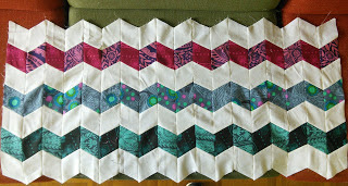 3. My Gardenife Table runner has two blocks completed and I am part way through the third block.